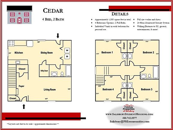 4 bedroom 2 bath house located in the highly sought after Cedar Crossing Community in Salisbury. There is a bathroom on each floor and all bedrooms are upstairs and have a sink and vanity in them for getting ready in a hurry. Pets are welcome* for an additional fee, 24/7 security systems for front and back door. Great outdoor living spaces for all to enjoy. -Income requirement is 2x the amount of rent per month, NET PAY (after all deductions). -Can schedule tours day of (aside from weekend) after income qualifying. -Resident is responsible for all utilities.