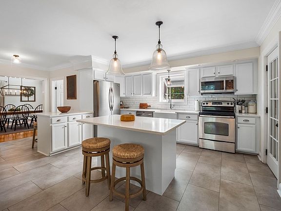 • Features: Countertops - Stone/Granite/Solid, Kitchen Island, Lighting - Pendant, Crown Molding