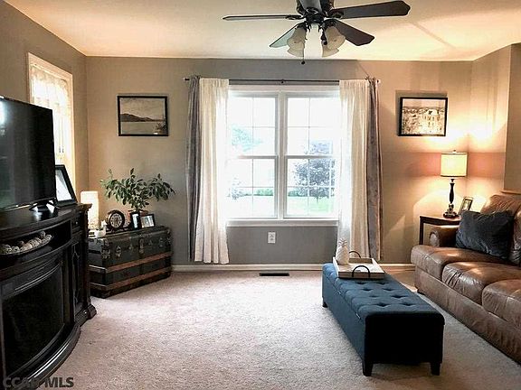 OPEN HOUSE CANCELED. Charming split entry home situated on a beautifully landscaped .32 acre lot in desirable Centre Hall neighborhood and cul-de-sac. Attractive and neat 3 bedroom, 2.5 bath home with bright, inviting living room, kitchen with breakfast bar, plenty of nice oak cabinets, adjacent dining area with sliders leading to relaxing rear patio. Spacious owners bedroom suite with 2 large closets and bath. 2 more bedrooms and full bath on main level. Lower level has finished light family room with windows, plus half bath and laundry room. Home has central air. Beautiful lot has flowers, shrubberies, Chinese Maple trees, flowering Cherry trees, lilac and other plantings surrounding the private patio. Nearly new - large rear shed for storage. Extra large 2 car garage offers workshop with 220 volt outlet for operating tools, etc. Walk to Grange Fair!!