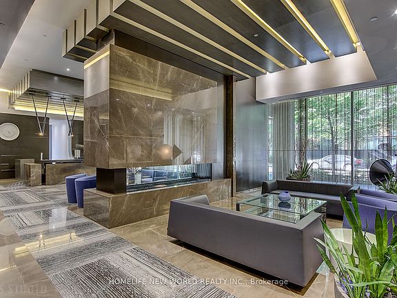 Stunning Luxury Furnitured Corner Unit With Wrap Around Windows. Desirable Layout With 2 Split Bedrooms, 2 Full Bathrooms, Master Bedroom With 4 Pieces Ensuite. Walk-In Closet In Each Bedroom, Open Concept, Engineered Hardwood Flooring Throughout, Floor To Ceiling Windows. 9 Feet Smooth Ceiling. Kitchen With Central Island, Granite & Corian Countertops. High End Stainless Steel Appliances. Gorgeous Unobstructed & Open City View. Luxurious Amenities: 24/7 Hour Concierge, Infinity Outdoor Pool, Billiard Room, Roof Garden Area, Gym, Visitor Parking. Very Popular Location Yorkville And Bloor Village. Convenient & Close To All Modes Of Transport, Close To Hwy 404, Subways, Ttc At Door, Schools, Shopping. **EXTRAS** All Elf, Window Coverings, Stainless Steel Fridge & Stove, B/I Dishwasher, Microwave, Washer & Dryer, Hood Fan,Washer & Dryer.