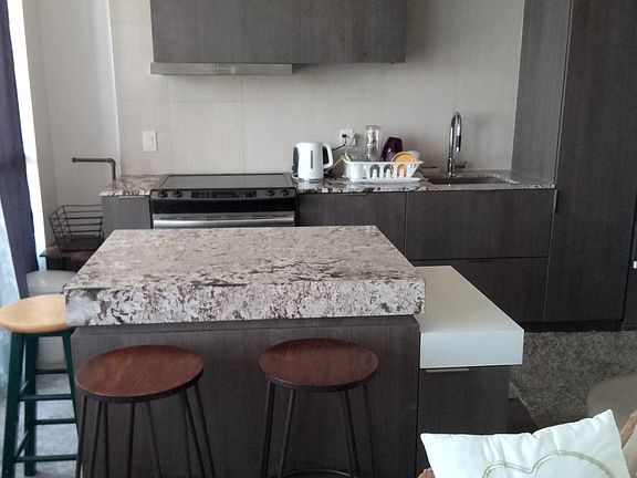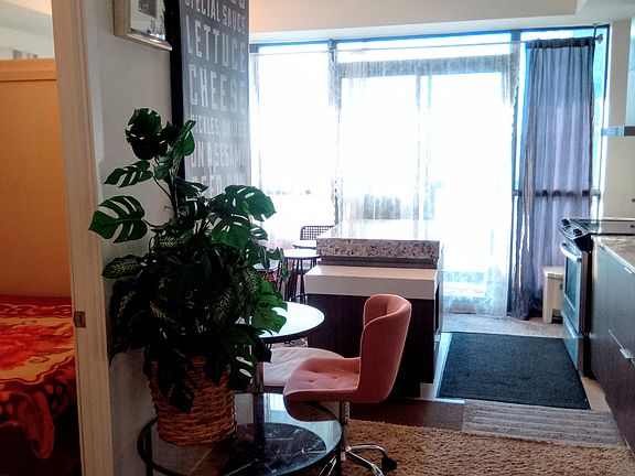 Luxury 1-bedroom+den condo in prime location 30+ floor available today. Or when would you like to move in? Panoramic view, 9' ceiling. Engineered wood floor throughout. Floor to ceiling window, gourmet kitchen. Internet/hydro incl. Double size bed in a bedroom, pull up sofa bed in a living room. Laundry in-suite. Unit suits 1 or 2 people, NO SMOKERS. Terrace with a swimming pool. Gym in the building. 10 min walk to prestigious Yorkville. 10 min to park-ravine. Transportation and shopping's close by. 24/7 RABBA on a side of the building, No Frills "around the corner". Minutes walk to Yonge/Bloor dual subway line. Water/ internet/ hydro/ heater/ aircondition incl.