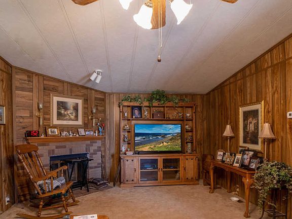 One owner 3/2 home in excellent condition on 2.75 ac. 1yr old metal roof with extra insulation added to roof. Very efficient utility cost. Open floor plan with dinning area , large living area with fire place. Attached oversize 2 car garage and two other storage sheds. Lrg. covered back porch with county view.Foundation inspected and meets permanent foundation Guide. New septic system being installed. Seller is providing Home Warranty . Some personal items and equipment negotiable.