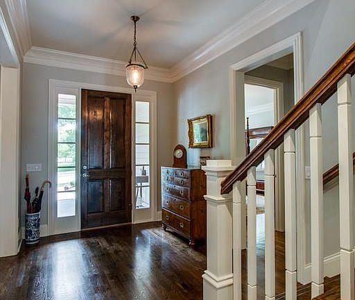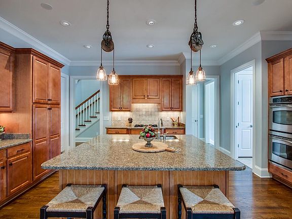 Wonderful open plan w/spacious wrap around porch*corner lot across from treed common area*wide entry*beautiful Hardwoods*Master Suite Dwn*Great Kit*Stainless App*Granite Counters*Open to Liv/Fam*Bar*Built In's in Liv/Fam*Sep Office*Beautifully Maintained.