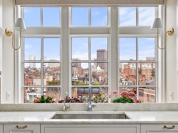 Exquisite Penthouse Duplex at 101 Chestnut Street, a premier doorman/elevator building on the Flat of the Hill. Completely renovated to the highest standards, this 3,000 sq. ft. home has fantastic views from every room. The gracious living room features a fireplace and French doors opening to a balcony overlooking the courtyard. The grand eat-in chef’s kitchen, with custom cabinetry and a fireplace, has an adjacent butler’s pantry/wet bar. Both rooms are framed by oversized windows with spectacular views of Beacon Hill rooftops, the State House dome, and the Downtown skyline. 4 spacious bedrooms, all with ensuite baths • Library, Den, Home Office, and Butler’s Pantry • 4 full & 2 half bathrooms • Generous foyer entries on both levels • Exceptional craftsmanship throughout: built-ins, millwork, and custom finishes • Abundant storage and closet space • Rental parking transferable at Brimmer St. Garage • Spectacular common roof deck with panoramic city views • Fitness & storage rooms