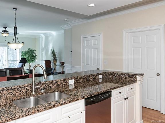 Only one Unit currently active in Winding Brook Condominiums Remarkable 1819 sq. ft Townhome, conveniently located off of I-84 in beautiful Southbury CT. This quality built unit was the Model unit which offers many upgrades. Quality of construction is like none other. gorgeous bamboo floors, 9+ Ft ceilings make the space even more impressive. The detail of the construction, trim, multi layer crown moldings and ingenious open floor plan will make you appreciate fine construction. The combination living and dining area is filled with natural light which reflects off of the gleaming floors. Snuggle up in front of the cozy gas fireplace or entertain the friends and family in the large living room with plenty of additional seating at the breakfast bar. Enjoy the warm sunshine lounging or grilling on your private rear deck. The two bedrooms on the upper level again, are beautiful and spacious with large walk in closets that have custom shelving. The home is equipped with the finest heating and hot water system. This is a beautiful, pet friendly community. There is Nothing to do to this home but move in Don't miss the chance to own this quality home, close to major routes for commuting yet secluded in a peaceful setting in Southbury. Call me for your private showing today