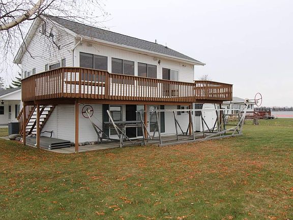 Amazing Panoramic & Elevated Views of Houghton Lake! Situated with 104 Ft. of Lake Frontage and 85 Ft. of Canal Frontage on the western shore of the largest inland lake in Michigan - Houghton Lake! Located on the calm side of the lake with great off shore fishing and the most amazing sunrises. This 2 story home features 1,536 Square Feet of living space complete with 3 bedrooms and 2 bathrooms (full and 3/4). The main floor features a spacious Family Room with door wall leading out to the lake, bedroom, full bath that doubles as the laundry room with a stackable washer/dryer combo unit and a fun bar area and utility/storage room. Head on upstairs to the Kitchen with door wall leading out a massive lake side deck, great for BBQ's and outdoor entertainment. Upstairs also features Dining