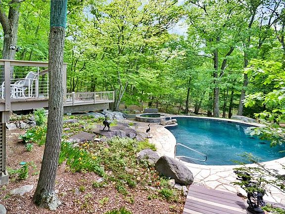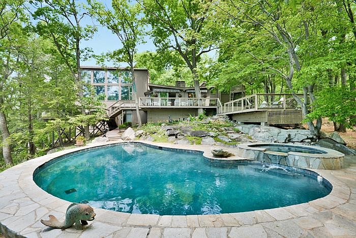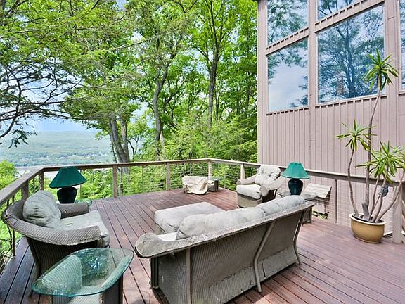 River view Modern Contemporary offers 16 ft ceilings, loads of glass and sunlight with beautiful outside spaces, expansive decks, freeform gunite pool & hot tub, offers the perfect getaway. Tranquil wooded setting yet minutes to Bear Mountain Bridge, shops, hiking, kayaking. Finished lower level complete with gym, pool access and indoor golf range. A wonderful river view opportunity