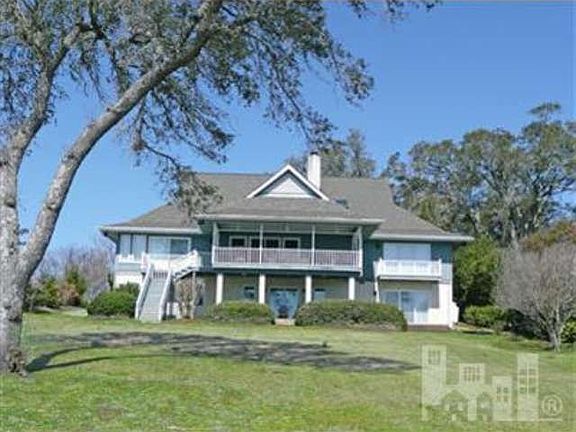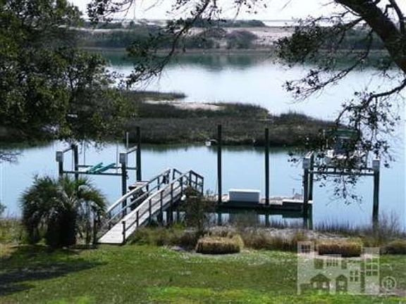 Breathtaking panoramic views of the Intracoastal Waterway to the ocean are on display from almost every room of this exceptional home. Private pier with 2 boat lifts & floating dock in very deep, protected water! High acre bluff beautifully landscaped & framed by live oak. Waterfront covered porch & aggregate patios, 2 family rooms w/fireplaces, 2 kitchens (downstairs makes an ideal in-law quarters), oversized 2-car side-entry garage, new roof, exterior paint, garage door, well pump & gutters. An extraordinary property that's a boater's dream, one of the rare finds where you can have a deep-draft boat out your back door. Tucked away off a quiet cul de sac with deep water at the lowest tides in a no-wake zone, but with natural protection from ICW wakes. Golf community, ramp access for pulling boats, optional pool & tennis, popular & friendly neighborhood! Truly a standout offering for waterfront property.