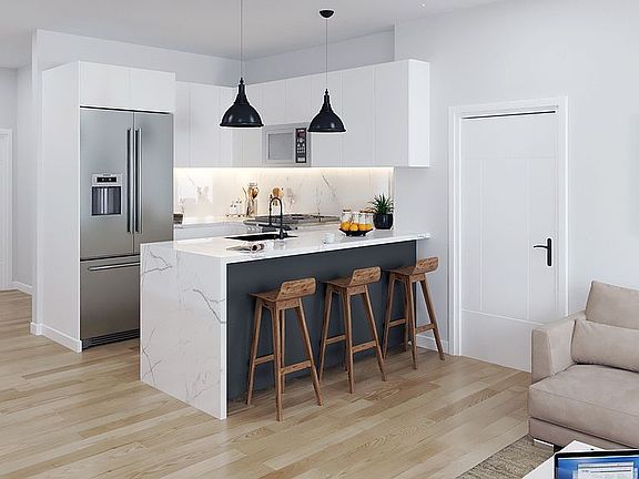 Pre Market Opportunity for this Stunning new construction 2 bedroom 2 bathroom in Boston's newest boutique luxury elevator building w/ garage parking and stunning roofdeck w/ amazing views. Floor to ceiling windows allow for amazing light and a sharp aesthetic to match the modern home. The spacious living room is open to the dazzling kitchen featuring bosch stainless steel appliances, gas cooking, Calacatta countertops, and a breakfast bar for dining. The waterfall countertops and black matte fixtures mesh perfectly with the frameless custom cabinets with offset grey base, offering the feel of true modern luxury. The smart layout offers two great size bedrooms, with a spacious master bedroom featuring walk in closet, & a luxurious master bathroom with marble walk in shower and Glass door. Central Air, w/d in unit, elevator, phenomenal outdoor space, and garage parking are just a few of the many comforts and ammentities at 101 Condor!