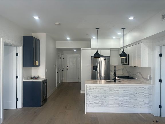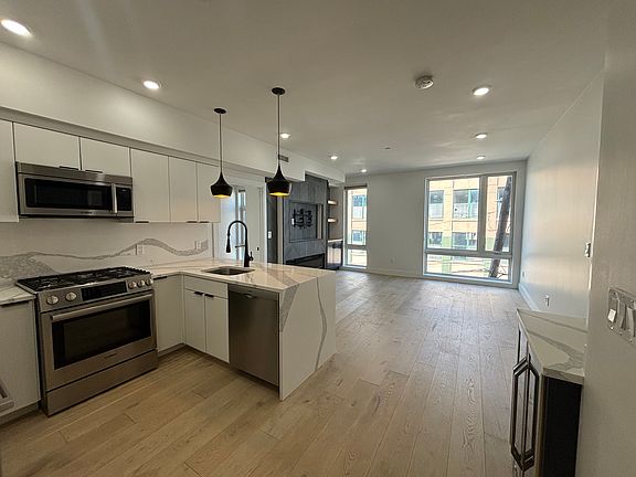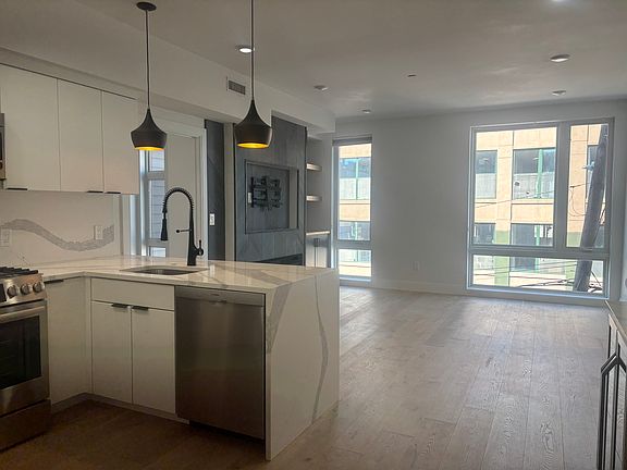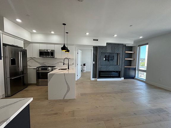 Experience luxury living at its finest in this exquisite Eagle Hill apartment. The open-concept kitchen and living area boast sleek hardwood floors, floor-to-ceiling windows that bathe the space in natural light, an elegant electric fireplace, and a built-in wine fridge perfect for entertaining. The primary suite is a true retreat, complete with a spacious walk-in closet and a beautifully appointed en-suite bathroom. The thoughtfully designed office/bedroom features a space-saving Murphy bed, custom closets, and ample built-in storage. Additional highlights include in-unit laundry, secure garage parking, and a stunning roof deck with panoramic water views and a grill for outdoor dining. Located in the heart of East Boston, you're just steps from public transportation, popular restaurants, and vibrant shops. This sophisticated residence offers a perfect blend of style, comfort, and convenience. 6-12 month lease