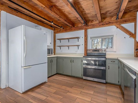 Discover the perfect blend of rustic charm and modern convenience in this stunning post and beam Saltbox home, nestled on 12 private acres of scenic countryside. This classic New England-style home features exposed beams, and a cozy wood stove, creating a warm and inviting atmosphere. The spacious 3-bedroom, 1-bathroom layout offers an open-concept kitchen and dining area, perfect for entertaining, while the sunlit living room boasts breathtaking views of the surrounding woodlands. Enjoy the beauty of nature right outside your door with mature trees, and endless possibilities for gardens, trails, or even a small farm. Despite its private setting, this home is conveniently located just minutes from major routes, shopping, and dining, ensuring easy access to everything you need.