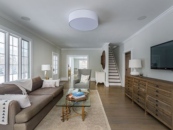 This 1930 Cape Cod has been stylishly renovated and updated. Finishes, materials and mechanical systems are exceptional. The main floor features a living room with fireplace, dining room and spectacular kitchen with granite counters, gas range, farmhouse sink, breakfast bar. The main floor master bedroom has a walk-in closet and luxurious marble bath with soaking tub and separate shower. On the upper level are 3 bedrooms and full remodeled bath. A large loft-like room is over the attached 2-car garage. All rooms have hardwood floors. A Crestron system has recently been installed to control security, heat and lighting remotely. New furnace. Exterior living spaces include the wonderful covered front porch and stone terrace with pergola reached from the kitchen. The 5-acre property encompasses a heated gunite pool & spa, open lawns, stone walls, flower and vegetable gardens, specimen trees. There is a small barn. Not far from Warren's town beach on Lake Waramaug.