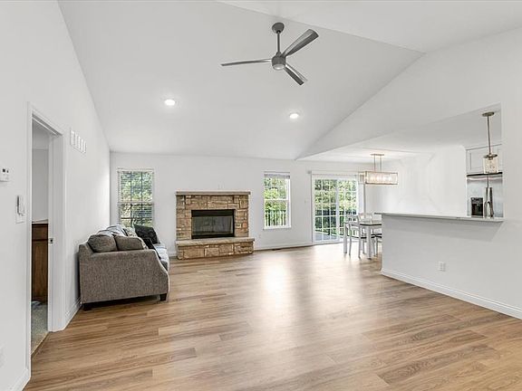 Constructed in 2022, this nearly new Detached Ranch Villa is in a prime Cottleville location, backing to trees. This stunning 2 bed, 2 bath villa features vaulted ceilings, main floor laundry, and a bright open floorplan. The kitchen shines with 36" custom cabinets, crown molding, soft-close doors and drawers, pull-out shelving, quartz counters, and stainless appliances. Enjoy luxury vinyl plank flooring, upgraded bedroom carpet, a full-stone gas fireplace, and upgraded lighting. Oversized 24'x20' garage fits your golf cart for quick rides to downtown Cottleville! A composite deck with wrought iron railing is a great place to relax at the end of the day. The refrigerator, washer, and dryer can stay for convenience. All were purchased new in 2022. Full yard irrigation, basement rough-in, and low $150/mo fee covering lawn care, snow removal, and street lights. **Walk to shops, dining, and more. This one won't LAST – act fast!**