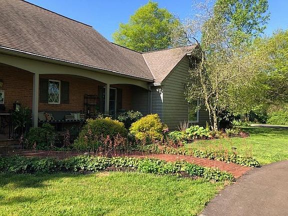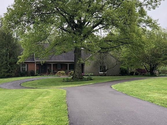 Your NEW old KY home is waiting! Wrought iron railings at front; Sit on the porches and watch the flowers bloom! Circle drive on 5 acres, mature plants, landscaping with woods views--extremely well-maintained 1 1/2 story home with 10 rooms incl. an updated kitchen -can lights, lots of cabinetry, built-ins/desk and AT&T internet, quartz counters, granite sink, bay window overlooking a large brick paved patio perfect for entertaining-partially covered; Side entry garage, several garden areas, 2 woodburning fireplaces-1 has propane logs, formal living / dining rooms, Florida room, family room with built ins, 1st floor master bedroom w/full bath, 2 zone HVAC. All window treatments / blinds convey. Walkup unfinished basement available for rec room use / storage; separate woodworking building, small garage for mower/implements, canvas carport. Home features many updates / great spaces for enjoying inside and out. Water softener in basement conveys -central vacuum system is included
