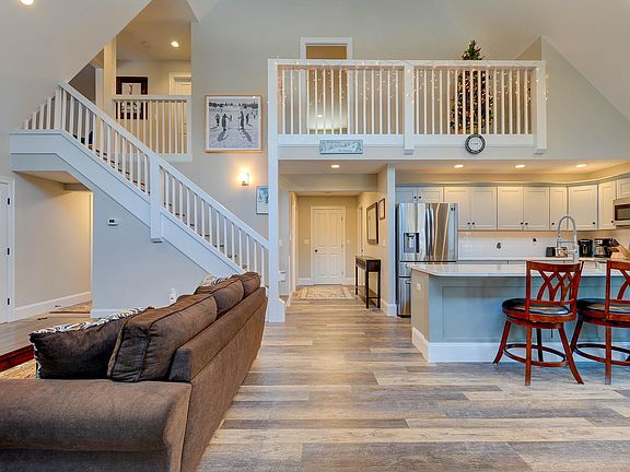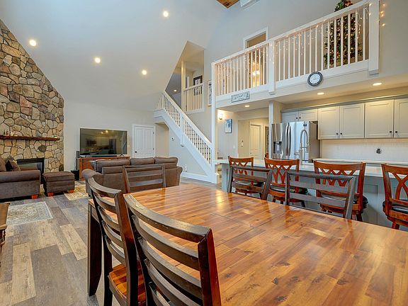 Secure your winter getaway for the 2025 season! 101 Cranmore Road Unit 7 is desirably located right by Cranmore Mountain and less than a 2-minute drive to North Conway Village. Step inside this 4 bedroom, 4 bath townhouse with vaulted ceiling and an open concept kitchen, living, dining area for all to gather and enjoy life after a day on the slopes. On the first level you'll find 3 bedrooms, each equipped with an attached bathroom and closet for additional storage, as well as the first level laundry room. Head upstairs to the oversized primary suite with a large closet equipped with a washer and dryer, and a private balcony overlooking the entertainment space below. Just down the hall you'll find the large media room where you can enjoy a game of foosball, catch up on your favorite show, sleep additional guests, or gaze at the stars from the attached deck. The home offers a comfortable atmosphere year-round with a floor-to-ceiling stone wall surrounding the gas fireplace, radiant heat throughout the first level, and mini-splits for additional heating or to keep everyone cool in the summer. The attached heated garage comes with an electric outlet for EV charging and extra space for outdoor gear storage. A built-in association irrigation system maintains lush landscaping and a manicured look during the warmer months. The home is being sold turnkey. These units don't come to the market often so schedule your showing today! Open house Saturday, 12/28/24, from 10a - 12p.