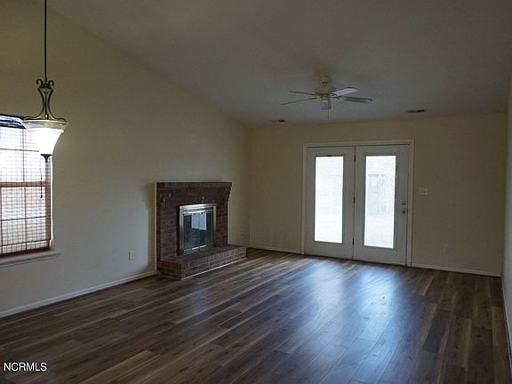Hammonds Creek Townhouse 2 bedrooms, 2 baths. Updated flooring throughout: Laminate in all but the bathrooms with tile in the bathrooms. Living/Dining Room combo Vaulted ceiling, brick fireplace and glass doors to private, back patio. Kitchen has white cabinets with steel and black appliances. Both bathrooms have updated fixtures. Master bath has large shower. Private fenced backyard with patio area and outside storage. Close to shopping, schools, restaurants and an easy commute to Camp Lejeune. Applicant to verify schools. Pet screening must be completed by all applicants regardless of if you own a pet. No charge for service/companion animals or applicants with no pets.