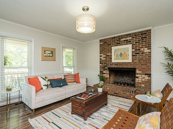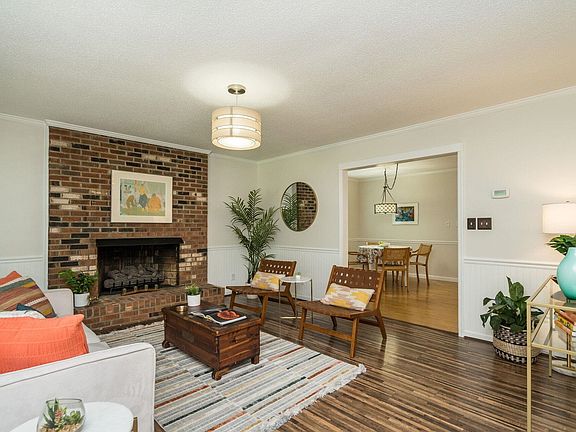 As you enter the quaint Hickory Ridge neighborhood, you're first greeted by 101 Crestview Drive. This sweet cape cod is a box-checker & a great bang for your buck. The covered front porch with swing is a warm welcome that takes you into the living room with brick surround fireplace. The dining room & kitchen are open & bright, with solid surface counter tops. A first-floor primary suite is around the corner, with laundry conveniently placed between the kitchen & bedroom. Upstairs are two more large, light-filled bedrooms and another full bath. All bedrooms have ceiling fans and brand new carpet. Out back, you'll find the generous screened-in porch, oversized detached garage with a bonus room above, huge fenced-in yard, and tons of parking. Freshly painted inside and out, with a brand new water heater and 2019 HVAC, all you need to do is unpack your bags. You'll be less than 5 minutes to West Point on the Eno, 10 minutes to Duke Regional Hospital, and only 15 minutes to Downtown Durham. Even a commute to Raleigh/RDU is easy with the new East End Connector. Life is good on Crestview!