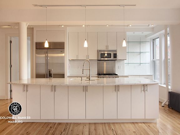 Enter directly from a key-locked elevator into this sunny, spacious two bedroom/two bathroom apartment with East, West, North and South exposures. The home boasts an open chef's kitchen with stainless steel appliances including Sub-Zero refrigerator, Viking range and microwave, Miele dishwasher, double sink with garbage disposal, and abundant cabinets. Additional apartment features include a windowed and an en-suite bathroom, stacked LG washer/vented dryer, multi-zoned central air conditioning and oak wood floors and spacious closets throughout. Pets are allowed on a case-by-case basis. The building is in a prime location surrounded by numerous boutiques, restaurants, transportation, gyms and markets.