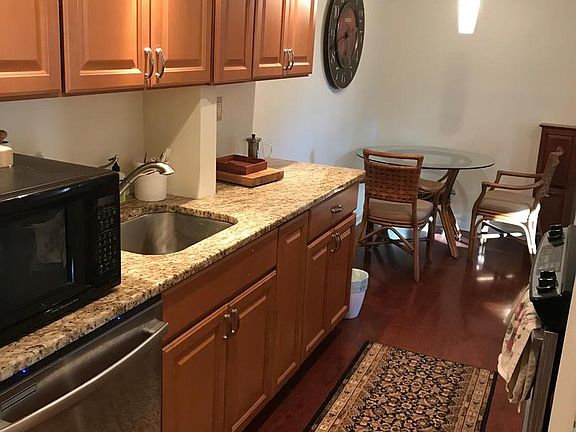 Amazing one bedroom condo in fabulous location! Walk in and be greeted by a reconfigured foyer area! Great closet space and full storage room! Completely renovated kitchen area! Pantry added too! Beautifully done. Brazilian granite counters with matching Whirlpool stainless steel appliances! Great open feel. Cherry stained oak hardwood floors make this unit a one of a kind! Updated bath puts the finishing touch on this great home! Newer sliding door leading to completely redone patio. Roof redone in 2012, HVAC system (2007) covered under association fees Replacement Windows (2017). So if beautiful, worry free living is what you want....here it is! The monthly fee includes much more than most....water, sewer, trash, HVAC system, pool and tennis courts. The grounds are maintained meticulously and do not disappoint! Walk to train. So much to offer here. This one is a must see home!