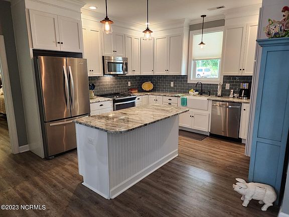 Fabulous home in Pine Knoll Shores ready to make your own forever home. This 3 bedroom, 2 bath pristine property has one floor living with an extra sun room to enjoy the outdoors without the bugs! LVP flooring, beautiful granite counters in kitchen, large rooms, garage and huge laundry room are just a few of the fantastic features of this home. It was built with 2 X 6 exterior framing, has hurricane windows, slider and garage door, leaf guard gutters, fenced backyard, water softener, outdoor shower and a floored attic just to name a few of the extras!! Bring your furnishings and make this your permanent home or home away from home. This location is premier so hurry!!