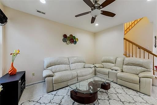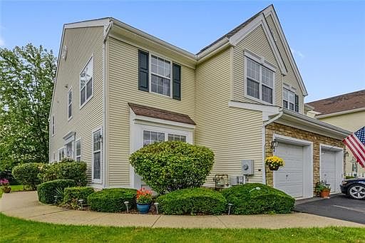Partial stone-front t/h is a highly sought-after end-unit featuring a bright,spacious floor plan,well-manicured grounds including a landscaped walkway leading to the side entry.Foyer area is open to the formal living&dining rooms,where many windows allow for plenty of natural light,&the warm,neutral wall color is sure to