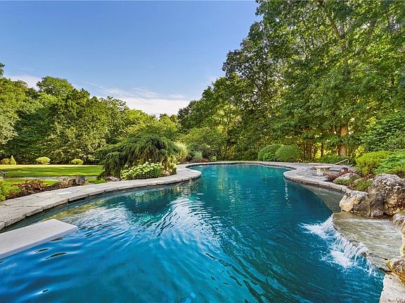 Shingle Style Colonial on 3+ flat acres with charming front porch located on a quiet cul de sac. Open floor plan, spacious eat-in kitchen overlooking the family room, formal dining room, living room, private office with built-in desk + bookshelves, and oversized mudroom. Private master bedroom with walkout covered porch. Expansive gym, sound system, bluestone patios, and heated 3 car garage. Terraced pool with rippling waterfall, outdoor kitchen with Viking appliances, surrounded by specimen plantings and vibrant flowers. Cedar roof, copper gutters, stone chimneys, and generator. Close to Bedford Village, Pound Ridge Reservation, Caramoor, Katonah, and only 1 hour to Manhattan!