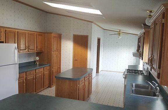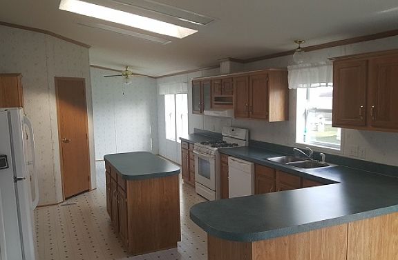 This spacious and comfortable double wide mobile home with an open floor plan is a MUST-SEE! Located on a nice corner lot, this home boasts three bedrooms, two baths, air-conditioning, large kitchen with walk-in pantry, laundry room, garden tub in master bath, separate walk-in shower, back deck, along with a nice 2 stall attached garage. Refrigerator, stove and dishwasher are included. Lot rent at Knollwood Estates is $265 for the 1st person ($10 additional per person) per month. Applicants over the age of 17, must complete a Knollwood application. Only applicants with an excellent credit history, a very good background, along with meeting our other requirements, will be accepted to live in this community.