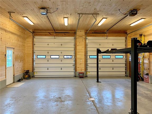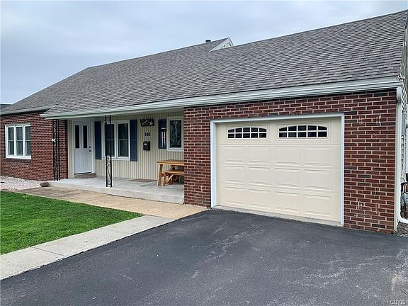 It's easy to fall in love with this one-level Ranch-style home set on a quiet neighborhood street, offering your dream garage! Garage is fully insulated with 2 large 10 x 10 overhead doors. The interior of the detached garage has just been re-done and lined with pine tongue and groove wood for a exquisite, finished look. This home offers central air, first-floor laundry, cathedral ceilings & a cozy gas fireplace in the living room. You have all the parking space you need with 2 driveways and an additional parking area on the side on the house, perfect for your RV. New french doors were just installed and a brand new 12 x 12 shed added onto the property. In the summers, you can relax on the covered front porch and the back patio area, as your own outdoor space to enjoy.