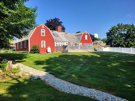 PICTURE PERFECT! WARWICK POINT STYLE HOME in desirable neighborhood! Window lined dining room. Back to back fireplaces in living room & dining room. Propane stove will remain in one fireplace. Option to have main bedroom on 1st floor or 2nd floor. Each has main bath. Fully applianced kitchen has granite counters, custom made cabinets, deck, breakfast nook, recessed lighting. 1st floor has beautiful enclosed sun room. Second floor has two bedrooms, one bedroom w/ window seat, sky lights, ceiling fan, & new carpet. Second bedroom has custom built in drawers, full bath with double sinks and large floored attic with hayloft style window. Many options for unfinished walk in attic-study, 2nd living room, extra playroom. Lower level finished with Rec Room w/ wet bar, exercise room, & utility room. Great for entertaining! Two car garage attached. Sliding doors to double tiered deck overlooking great backyard. Large Shed. Privacy fence. Easy commute to Mass Pike & Rt 84 to Hartford or Boston