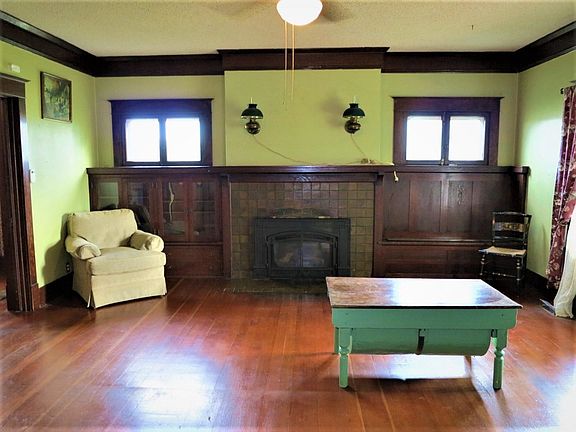 Step back in time in this beautifully maintained 2 story Craftsman hm on 5 acres w/numerous outbldgs & meticulously landscaped yard. The home boasts a formal LR w/a propane gas fireplace & built in bookcases like going to a classic club house. The formal dining room has all the original woodwork w/built in hutches. The kitchen has Corian countertops & newer vintage style gas stove/range. The 2nd floor has 4 bdrms & a full bathroom. The hardwood floors on the 2nd floor was refinished just a few years ago. All 4 bdrms are spacious but 2 of them have a large 2nd room that could be used as a nursery, a dressing rm or office. The hm is also equipped w/a security system. The unfinished bsmt has storage rooms & workshop areas. There is a huge front covered porch/deck & the back has a large concrete patio area. The outbldgs inc. a 34'x44' metal shop garage w/concrete floor, built in benches & shelves, a 20'x50' chicken barn, along w/4 more storage sheds.