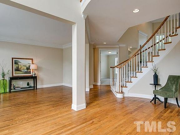 This EAST FACING, brick home is situated on a beautiful cul-de-sac lot w/ one of the largest backyards in Southbridge at Cary Park! The huge FRESHLY PAINTED daylight basement offers endless possibilities. ALL NEW CARPET on 1st & 2nd floors. The BRIGHT & OPEN floorplan features all formals, DRAMATIC curved staircase & 2-story family room. Gourmet kitchen w/oversized island. Large master suite w/two walk in closets & owner's retreat. 1st FL guestroom w/full bath. Screened in porch. 3 car side load garage.