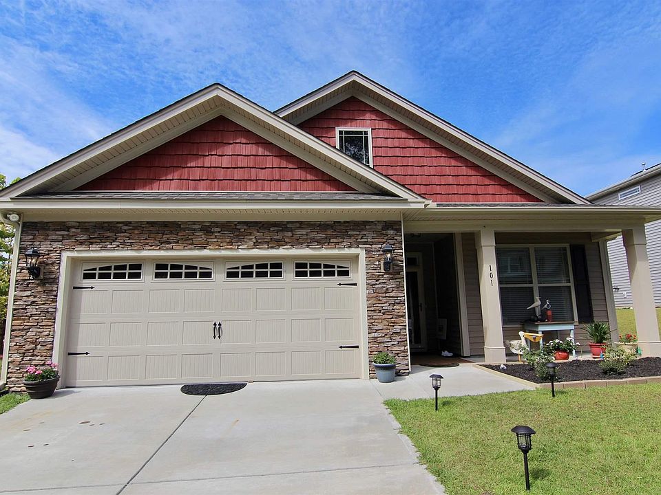 Westport plan. Beautiful, Clean and Move-In Ready! Corner lot, 3 Bedroom, 2 Bath Home. Great location to downtown Lexington, nearby shopping, Lexington District 1 Schools and minutes from I-20, Lake Murray, and Highway 1. Additional Features: covered back porch, backyard privacy fence, rear security door, custom blinds, cabinetry with crown molding, walk-in pantry, open spacious floor plan, master bath with separate garden tub and shower. Great room is open to kitchen and complete with gas-log fireplace. Energy efficient.