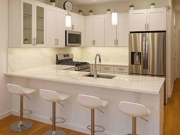 Welcome to 101 Dupont Street Apt # 2, w/ PRIVATE ROOFTOP! This floor-through THREE Bedroom, THREE Bathroom home is a true gem and a rare find for Greenpoint. Boasting over 1400 sq ft of indoor space, this modern apartment has an open kitchen, generous living space, and furnished, private rooftop. The kitchen contains high-end appliances, including a Dishwasher, Microwave, Refrigerator, and Stove-oven. Exploring the bedrooms, they are well positioned within the home. The master bedroom contains spacious closets, and en-suite bath while the second and third bedrooms are split for maximum privacy. Each bedroom has its own bathroom! The bathrooms come equipped with luxurious finishes such as Italian porcelain tiles, custom vanities, rainfall showerheads, and radiant Heated Floors. The apartment is made complete with high 10' ceilings, Oversized Windows, Central A/C, a Washer and Dryer, spacious closets in each bedroom, and white oak hardwood floors. 101 Dupont is a boutique building conveniently situated on a quiet block, between Manhattan Avenue and Franklin Street - both being trendy stretches for shopping and eating. Find cult-classic pizza spots, carefully-curated clothing boutiques, sleek bars, tons of cafes, and historic Polish markets, all within reach. The East River Waterfront and parks are just one block away! Nearby transportation includes the G train at Greenpoint Ave (India Street), the East river Ferry, and the 7 train at Vernon Blvd-Jackson Av. Pets negotiable The worksmanship of this apartment will exceed your expectations. Call to see today!