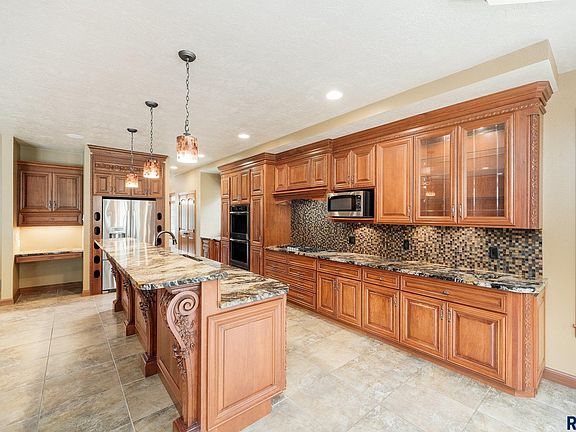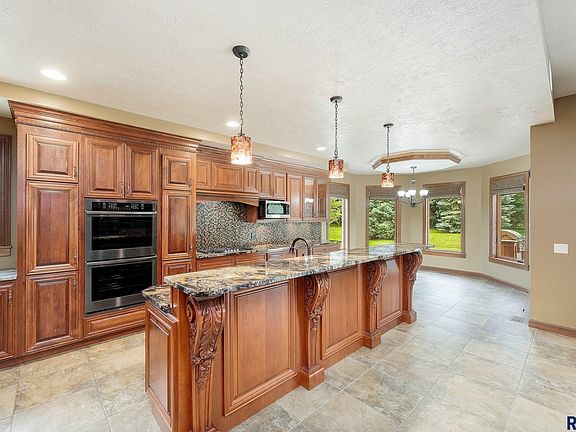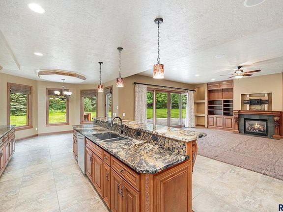Embark on a journey of refined living within this exceptional Dell Rapids Estate. Sprawled across 2.3 acres of beautiful landscape, this residence is a blend of privacy and space. A grand back patio invites you to host gatherings buffered by a partially fenced backyard and adorned by stately shade trees. A true acreage feeling in the city. This builder’s personal gem claims over 5,000 sq ft with quality finishes to match. Highlights include a chef’s kitchen, pantry and dining, in addition to a theater area, premier built-in cabinetry and windows/doors. Not to be overlooked is the savings and comfort from the Geothermal heating and cooling system. Solving the challenge of garage space, a 2140 sq ft heated garage aspires to hold over 6 vehicles and shop space or other creative endeavors. This haven of serenity lies just a short drive away from the attractions of Sioux Falls and Brookings. Seize the moment and make this in-town acreage your own!