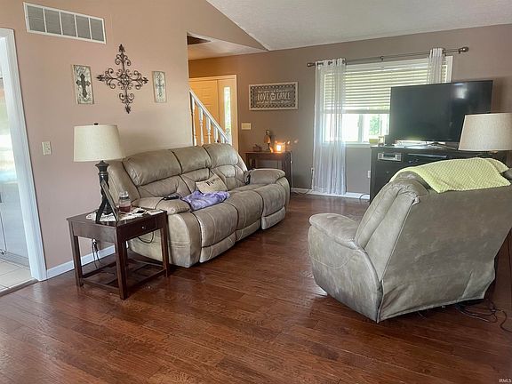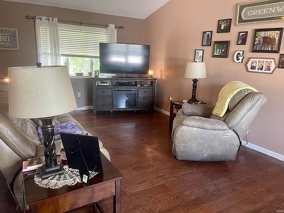 Great home with 3 bedrooms, 2.5 baths with nice open rooms. Light and bright kitchen with all appliances & opens to breakfast room with view of the in-ground pool, fully fenced-in back yard on nearly 1/2 acre lot that offers minimal yard work. Pool house great for hanging out in the shade & provides 1/2 bath to change in. Great location to Otis Park, Shopping, Schools and easy access to Hwy 37 & I69. Don't miss out. Note: Will have tax info ASAP. brand new heat pump. Pool liner is 5 years old. Large attic storage. Direct TV, Dish & Xfinity for cable