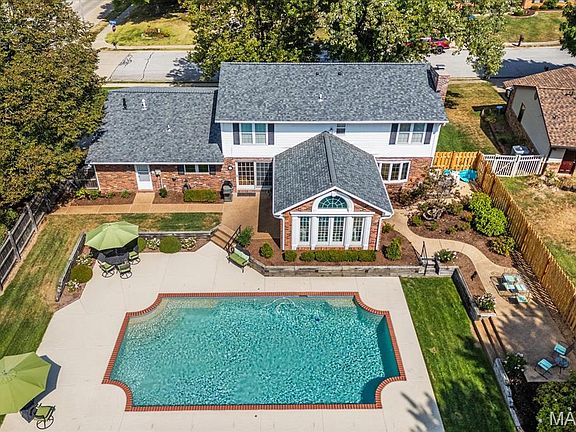 Welcome to a home where timeless design meets modern comfort in the heart of O'Fallon. The main level is designed for both daily living and entertaining, from the formal living and dining rooms to the inviting family room which opens to the into the beautifully designed oversized four-season room which features 180 degrees of windows and peaceful views of your sparkling pool. This home features a gunite pool, which is considered the premier option for in-ground construction. While a significant investment for the current owners, this high-quality pool is built for lasting enjoyment, offering the new homeowner a durable and valuable feature for years to come. The heart of the home is the recently fully updated kitchen—with white cabinetry, upgraded appliances, and ample solid surface counter space. A massive laundry room and convenient drop zone with garage access make everyday living a breeze. Upstairs, the primary suite is a true retreat, boasting a sitting area, walk-in closet, and a luxurious ensuite bath. Three more generous bedrooms ensure everyone has their own space. This property's fantastic curb appeal, corner cul de sac lot, and side-entry garage create a stunning first impression. This home has been thoughtfully prepared for you, from the immaculately cared-for interior to the upgraded pool setting. It's ready for you to simply move in, settle down, and start enjoying your new home.