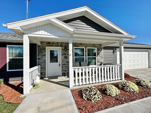 Home for Sale in Southside El Dorado Springs, MO. Great Location. Great Home. Welcome Home to the south edge of El Dorado Springs, MO. This 3 bedroom, 2 bathroom ranch-style home was built in 2023 and features 1260 sq ft and a 2 car attached garage. The living room is large and inviting and flows nicely to the dining room and kitchen. Stained wooden cabinetry and attractive tile flooring bring beauty to the kitchen while ample countertop space and newer appliances make it functional. A large utility room off the kitchen also has space for shelving for a pantry if desired. A wide hallway leads to the bedrooms and bathrooms. The master bedroom is spacious and features a walk-in closet and an en suite bathroom complete with a full-sized walk-in tile shower. The remainder of the home features 2 guest bedrooms and a second full bathroom. A covered front porch and newly established landscaping and lawn bring beautiful curb appeal to the home. A rear patio off the dining area allows easy access to the backyard which borders a lovely city park. Call soon for your chance to own this beautiful home.