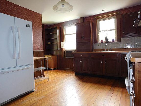 Picturesque Victorian awaits your arrival to begin her next chapter. Intriguing showstoppers include stained glass front door and window above, curved banister with gentleman's bench, ornate woodwork and trim, parlor with alluring and unique gas fireplace and large bay window, formal dining room, large kitchen with pantry and so much more. From the dining room, there is access to the living room, huge storage closet, kitchen with café door for privacy, foyer area, and hall by second entrance, a full bath and laundry, which offers a multitude of possibilities for your lifestyle. Do not miss the deck off the laundry room. Den on main level could be used as a sleeping room in a pinch. For convenience, there is a half bath tucked under the stairwell. Escalate to the upper level via the curved banister to four spacious bedrooms and full bath. You will also enjoy the comfort of a whole house fan, window air conditioners and mature trees to help keep you cool. There are pull-down steps to floored attic. Home is sited on 3 colorfully landscaped lots, is partially fenced, and has frontage on 3 streets to insure total privacy. Plastered basement has an extended garage with access to a patio, mechanical room and two other dry storage areas. Boiler and hot water heater replaced in 2020. Detached garage or storage shed is a great place to store all your extras.