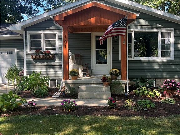 Charming 5 bedroom house oozing curb appeal and warmth. This inviting home has new premium siding, soffit and facia, cedar front porch and lush landscaping. Inside is full of natural light hardwood floors, updated bathrooms, new modern lighting and fixtures, a statement fireplace{electric} finished off with venetian plaster finish. Down the bright staircase you will find a walk out basement featuring an awesome view 3 bedrooms, a full bath with new fixtures and walls, new water hearter, a fantastic, money saving hot water boiler. The very big family room has a new brick accent wall and doors leading out to your gigantic back yard. Here you will find a brand new deck surrounding a new pool. You will delight in this move in ready Catlin home.