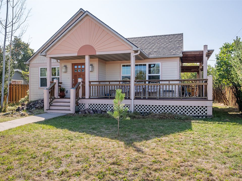 This 4-bedroom, 3.5-bath contemporary cottage puts you minutes from downtown Missoula, the University, trailheads, and neighborhood restaurants. Hardwood floors flow across the main and upper levels, while the kitchen and baths feature durable eco-friendly marmoleum and fresh carpet downstairs. Arched doorways and crown molding throughout add architectural character to the inviting interior. The main floor has a primary suite with full ensuite bath, a second bedroom, and a half bath. Both the upstairs and downstairs each include a bedroom and full bath, along with abundant built-in storage. A breakfast nook, spacious laundry room, and detached 2-car garage keep everything organized and functional. Outside, the fully fenced yard and covered wrap-around porch make it easy to take advantage of Montana's seasons.