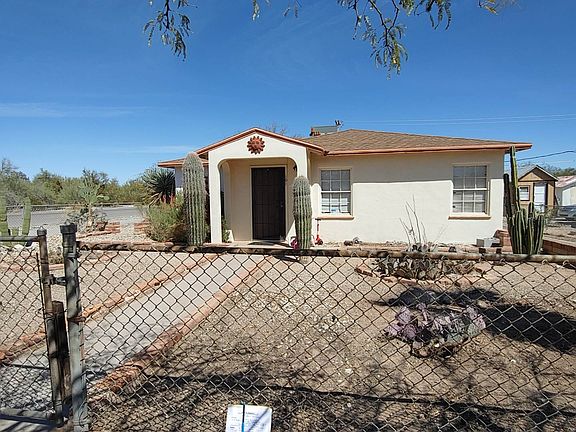 Clean and neat this stucco home on a corner is a charmer and is sure to please. Living/dining room is light and airy next to the galley kitchen with natural gas stove and fridge. Washer and dryer to remain. Three bedrooms and an updated bathroom finish the picture inside. Central A/C with gas pack for warm or chilly weather comfort. A large covered porch will give you many pleasant hours in the outdoors. Completely fenced the yard is pleasantly landscaped with easy care in mind. Driveway and garage offers off street parking and there is an RV hook-up. Add the mountain view and the picture is perfect.