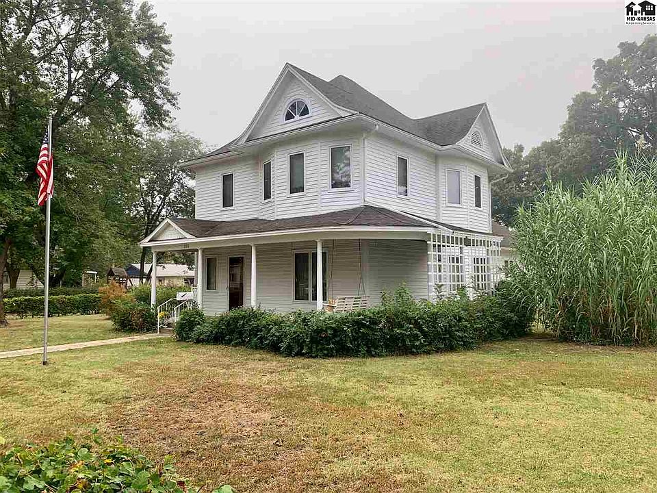 Enormous FARMHOUSE charm for sale in Moundridge. 4000 sq ft of updated living space. Master suite featuring original french doors and natural light. Newly remodeled master bathroom suite. Brand NEW solid surface counter tops and kitchen flooring. Spacious 3 car detached garage. Main floor master, 3 upstairs bedrooms, and 2 bonus rooms in the basement. New carpet through out the main floor, nice main floor laundry room featuring a 1/2 bath. Come see all the JoJo possibilities...