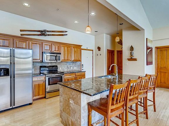 Own in the heart of Frisco ON Main Street, overlooking Frisco's Historic Park and Mount Royal. Top floor penthouse with breathtaking wall of windows, tons of natural light, vaulted ceilings, and two private decks. Bamboo hardwood floors. Large kitchen and open floorplan; perfect for entertaining. Quaint building with excellent amenities: private dedicated underground parking, plenty of storage, hot tub, exercise room, and elevator access. Big rental potential and Turnkey!