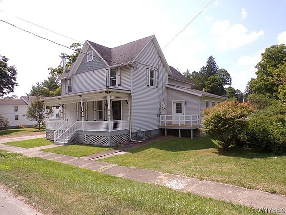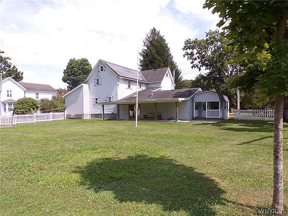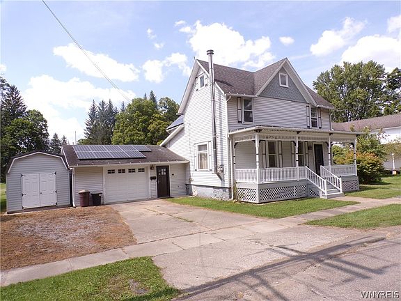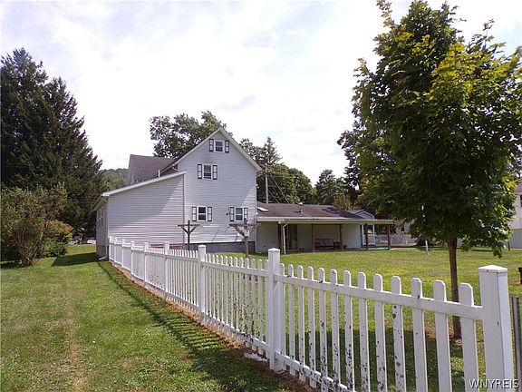 Spacious open concept 4 bedroom 2.5 bath village home with primary bedroom and laundry on the first floor. Beautiful restored wide plank floors in the open concept kitchen/living room/dining room. Very spacious first floor laundry also serves as half bath. Large sundrenched primary bedroom with en suite bath and walk in closet and private open porch. The bar room will be the favorite place for the family and friends with sliders out to the covered patio and back yard. The tiny house will be a great playhouse or garden shed/room. Very large fully fenced backyard with raised beds for your favorite garden vegetables. Upstairs you will find three spacious bedrooms all freshly painted and new laminate floors, and a large common bath with tile floor and plenty of storage. The attached garage offers plenty of additional storage. Relax on the covered front porch and enjoy the neighborhood street. Don't worry about those electric bills this home is hooked up to the grid and has a pellet stove in the living room. Put this one on the list of homes to see.