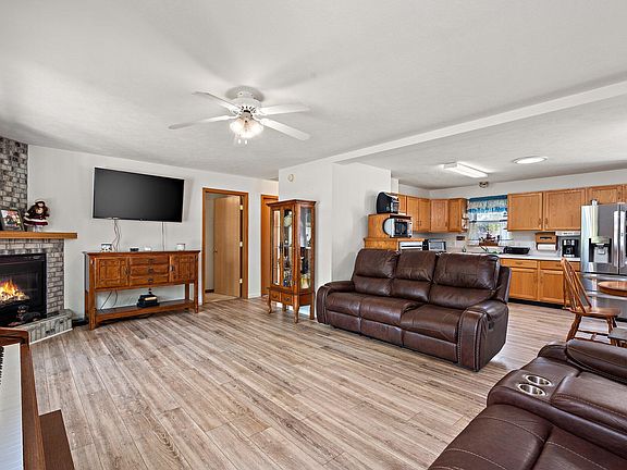Welcome to your dream home! This beautiful 3-bedroom, 2-bathroom property is situated on a desirable corner lot and offers an array of fantastic features. Enjoy the inviting living room with a cozy fireplace, perfect for relaxing evenings. The split floorplan design provides privacy and functionality, making it ideal for families. The open concept layout creates a seamless flow between the living, dining, and kitchen areas. A chef's delight with ample cabinet space and included appliances. Conveniently located off the garage entrance, with extra storage space. Natural light floods the home through skylights, creating a bright and welcoming atmosphere. Relax or entertain on the deck in your private backyard, complete with a gas line for grilling. 2.5 Car Attached Garage gives Plenty of space for your vehicles and more. Perfect for DIY projects and hobbies. Close to town, providing easy access to shopping, dining, and entertainment.Don't miss the opportunity to make this fantastic property your new home!