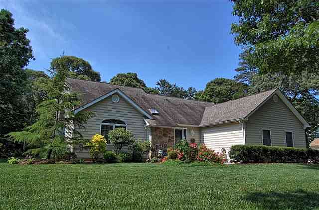 Now available is this 4 BR 3 BA "Super Brentwood" model built by locally renowned Bowman Builders. The home is situated on nearly an acre of wooded, yet meticulously manicured, grounds in the well established executive neighborhood of Woodland Estates. The southern exposure at the rear of the home will allow the new owners to enjoy all of the custom features including: the wisteria covered pergola on the deck, large koi pond with electric pump & lights as well as the many beautiful plantings. As you enter the home you are greeted by the warm hardwood floors and custom wainscoting which bring you to living room with soaring vaulted ceilings. To the right you will find 2 guest BRs, guest BA and laundry room leading to the attached 2 car garage. To the left is the large master suite with split bath and walk in closet. The large custom kitchen features underlit cabinets, granite counters & stainless appliances which opens to the dining area and sitting area with custom cathedral ceilings.