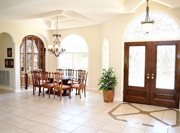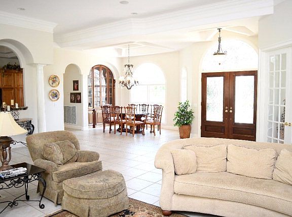 This stunning 3 bedroom/3.5 bath home is an absolute show stopper! Upon entering through the large, double mahogany front doors you are greeted with an open, airy feel that seems to bring the outdoors in. The den and kitchen are open to one another with floor to ceiling sliding doors that open onto the back patio area that is perfect for entertaining! Home has many beautiful built-ins in the dining room, den and home office! All of the arches and extras in this home give it the custom and extremely high end feeling that equals the quality of construction.