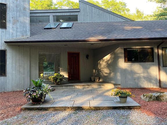 The house at 101 Easton Road is a roomy, light-filled handsome contemporary with 4 bedrooms and 3.5 baths. It sits on a flat ~2 acres with two colonnades of white pines lining the approach. The driveway is gravel and grass giving voice to natural peacefulness. The house has an exterior profile composed of geometric volumes sided with vertical planking. The sheltered front entrance welcomes with a broad stoop. Inside, the cathedral foyer opens in all directions and is bridged by the second floor hall. A dining room, large living room, spacious eat in kitchen, and den/parlor with back corridor all present walls of windows and sliders to a house-length rear deck. The kitchen has terracotta floor tile, a walk-in pantry, and tons of storage. The first floor is completed by a full bedroom en-suite, and a guest powder room. The second level has a large main suite with very large walk in closet, and an oversized bathroom. There are 2 additional bedrooms and a hall bath. The lower level offers unfinished space. Off the mudroom is the two car garage and the large, staired attic. The house has everything - space for work, play, projects, entertaining and all kinds of living, plus lots of storage, place for cars, outside room for pets, gardening, kids, relaxing - whatever. Some updating is desirable, but how easy to retrofit the bright and sound structure. Sidewalk to schools. Multiple routes to errands, shopping, beaches, transportation, etc.