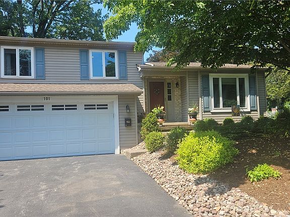 Sadly..these Seller's have to leave their recently aquired Dream Home, due to relocation purposes! This Spectacular Tri-Level Split tucked away on 1 of Irondequoit's best kept secret locations, has been updated, maintained & decorated to perfection. Updates & improvements include Custom Kitchen & Dining Area with Granite Counters,Heated floors, Pantry, and Sliding Glass door (has built-in tempered blinds) that leads to oversized deck, that overlooks parklike rear yard & wildlife and patio. Hunter Pro-C Sprinler System keeps lawn lush! Interior features open 2 story Formal Entry w/Large Sunlight Living Rm that has 20' Vaulted Ceiling, that opens above to Kitchen & Dining area & Vinyl Plank Wood mode Flooring. Lower Level has Fireplaced Family Rm., w/new carpeting (this area could serve as a 4th Bedroom also) & Custom Built Wine Cellar Bar Rm! 3 Nice Size Bedrooms w/newer Floorings, Bdrm #3 currently serves as a Customized Home Office! Main Bath freshly updated & remodeled as well! Heated & insulated Garage w/Swiss Trax flooring offer's options! Additonal updates & improvement, to many to list, must see! Delayed negotiations until 6/25/2024 at 1 p.m.
