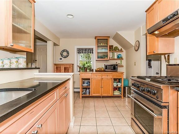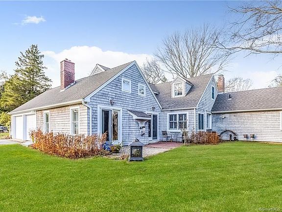 Location, Location, Location! Steps away from Downtown Mystic, this lovely 2430 square foot, cedar-shingled Cape resides in the Pequot Ave. neighborhood surrounding the Mystic-Noank Library. Fully renovated in 2006, this home boasts a spacious, first floor master bedroom with full bath. Open concept living room with vaulted ceilings and propane fireplace leads to lofted office or den on the second floor. Fully updated kitchen with gourmet gas range and breakfast nook. Separate dining room with wood fireplace. Two additional bedrooms on the second floor which includes a seasonal peek at Fishers Island sound. Three beds total and two full baths on approx. half acre lot. Attached garage. Charming walkable neighborhood - enjoy strolling downtown to enjoy shops, restaurants, nightlife.